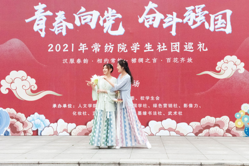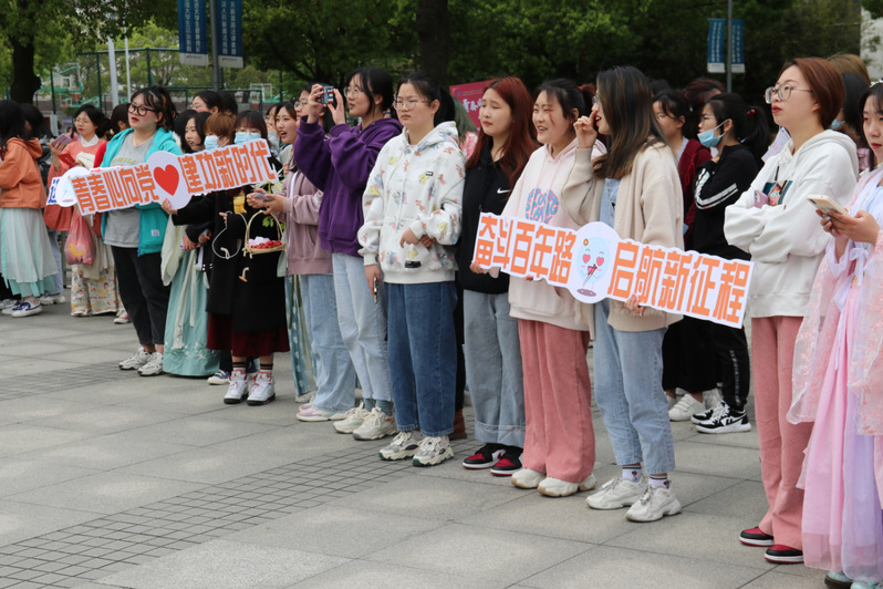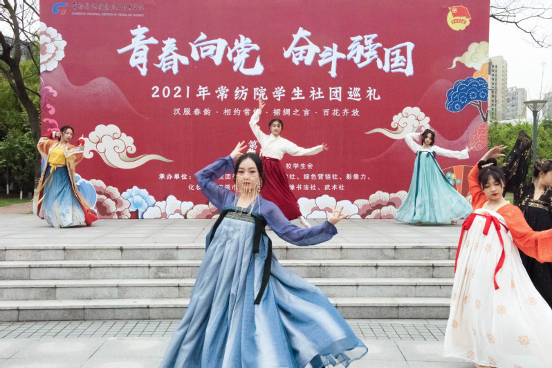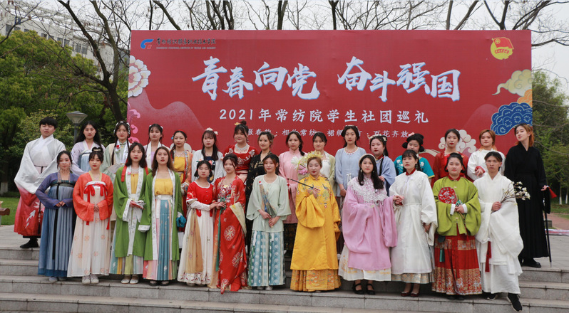 为鼓励青年学生传承传统服饰文化,弘扬传统文化精神,坚定文化自信,在校园内营造庆祝中国共产党成立100周年的浓厚氛围,塑造常纺美育品牌,4月14日下午,我校迎接建党100周年专项学生社团巡礼暨“汉服春韵,相约常纺;裙绸之言,百花齐放”中国华服日展示活动在创美广场举行。党委书记吴访升来到现场和同学们一起观摩活动。党委委员、副院长张震宇,党委委员、党委宣传部部长夏斌,党委学生工作部部长李洁琦,团委书记李凯,人文学院党总支书记顾明智及各二级学院党总支副书记、团委书记,社团指导教师代表参加了开幕式。此次社团巡礼活动吸引了近1000名同学热情参与。
