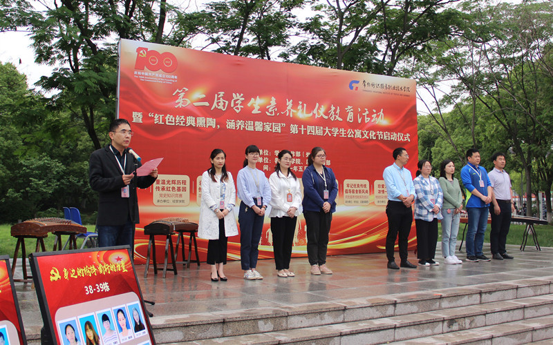 5月19日下午13:00,我校学生处在创美广场举行第二届学生素养礼仪教育活动暨第十四届大学生公寓文化节启动仪式,学校党委委员、副院长张震宇、后勤保障部副部长蒋艳、各二级学院党总支副书记、公寓辅导员、学生处和后勤公寓管理中心相关人员及200余名学生代表参加了启动仪式。仪式由学生处副处长顾广涛主持。