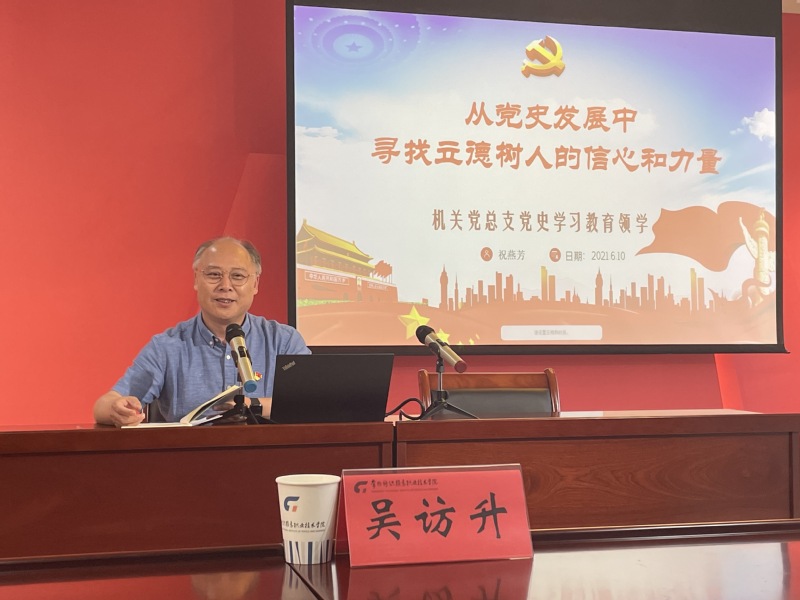 祝燕芳同志以《从党史发展中寻找立德树人的信心和力量》为题,从新民主主义社会的建国实践、新民主主义向社会主义社会的过渡、社会主义制度确立的伟大意义三个方面进行了阐述,强调了坚定中国特色社会主义制度自信,首先要坚定对中国特色社会主义政治制度的自信,增强走中国特色社会主义道路的信心和决心。从党史学习中得到启发:团结一切可以团结的力量,加强宣传工作的重要性,提升制度执行力、遵循科学发展规律。