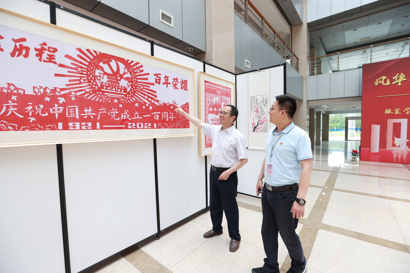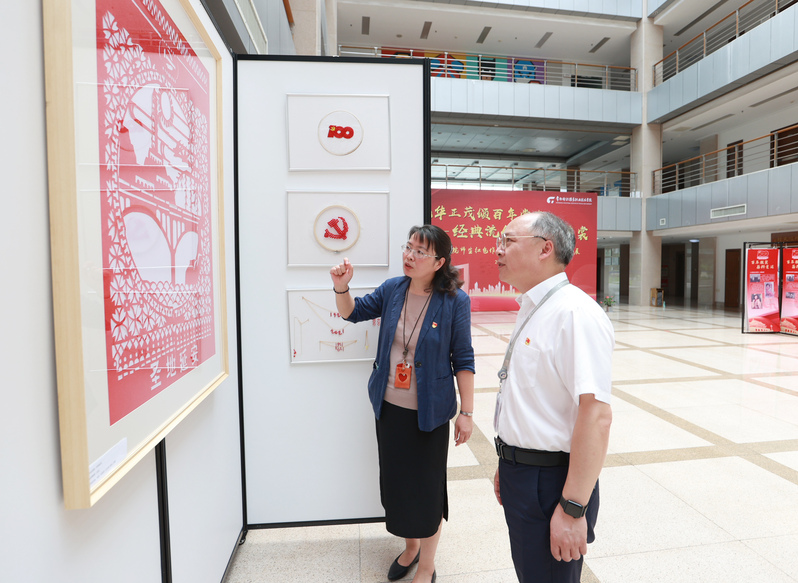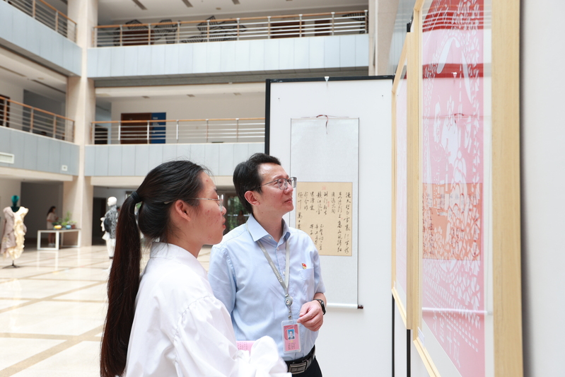 为庆祝中国共产党成立100周年,深入学习贯彻习近平新时代中国特色社会主义思想和党的十九大精神,深入领会习总书记对艺术创作和美育内涵论述的重大现实意义,凝聚服装学院教师同心共筑中国梦的强大精神力量,服装学院师生和剪纸社、优编坊等社团的同学共同创作了一批艺术作品, 6月16日中午,由服装学院主办的“风华正茂颂百年党史,经典流传赏世纪华裳”师生红色作品展暨百年服饰文化变迁展在7号楼文化展示中心一楼大厅举行。