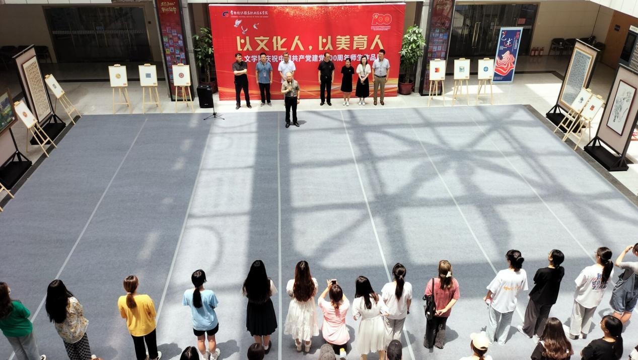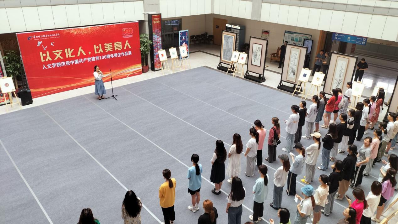 “以文化人、以美育人”人文学院庆祝中国共产党成立100周年师生作品展在此举办,展览共展出书法、国画、油画、创意美术作品60余幅。参加开幕式的领导和嘉宾有:党委书记吴访升,党委委员、副院长邓凯,团委书记李凯,图书馆长潘荷新,以及人文学院党政领导和师生代表,活动由人文学院党总支书记顾明智主持。