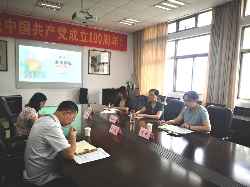 9月28日上午,纺织学院召开党政例会,会议由纺织学院党总支书记高妍主持,党政班子成员、综合办相关同志参加,校党委委员、副院长赵玲珍同志列席会议。