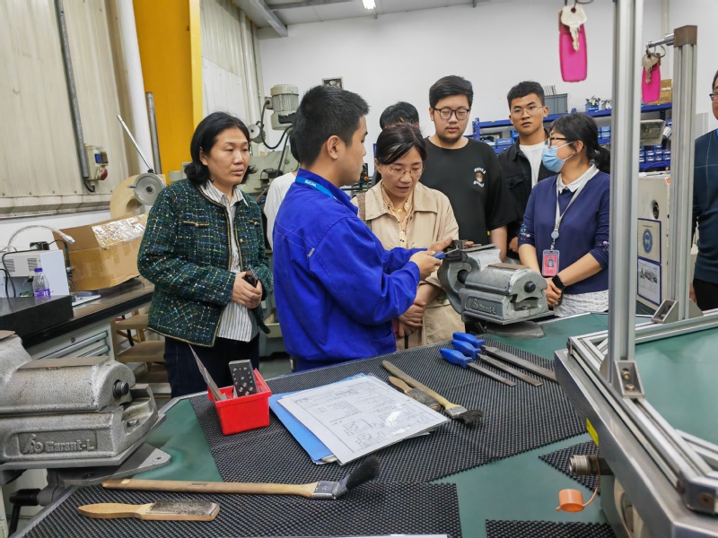 随后葛亮带领大家参观了生产车间和培训中心,培训中心参照了德国技术培训模式,采用理论和实践相结合的双元制教学方式。参观中,大家认真听取了培训师的讲解和介绍,并与企业在培学徒进行了沟通交流。