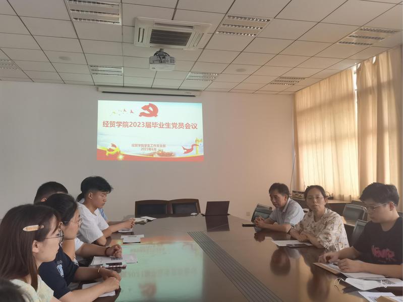 为进一步深入推进学习贯彻习近平新时代中国特色社会主义思想主题教育走深走实,更好地引导学生党员坚定党员理想信念,提高党性修养,增强身份意识,在2023届毕业生即将离开母校、踏上新征程之际,经贸学院学工支部于6月15日召开2023届毕业生党员会议。会议由学工支部书记蒋文贤主持,党总支书记林洁、学院退休党员教师彭康、田茂松以及23届全体学生党员参加了会议。
