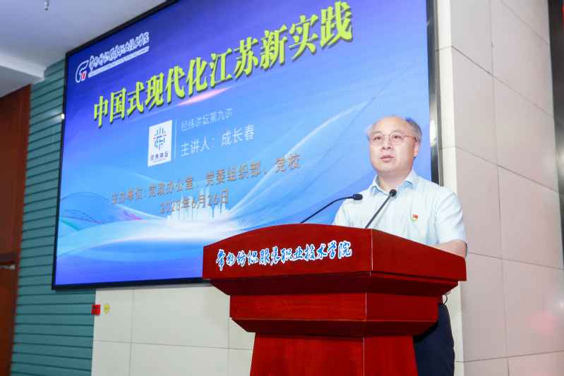 成长春以《中国式现代化江苏新实践》为题,从正确理解和大力推进中国式现代化、以高质量发展推动中国式现代化、江苏推动高质量发展的生动实践三个方面,详细阐释了中国式现代化江苏新实践。成长春指出,要正确理解和大力推进中国式现代化,中国式现代化是中国共产党领导的社会主义现代化,是以人民为中心的“并联式”现代化,是促进人的发展和社会全面进步的现代化。