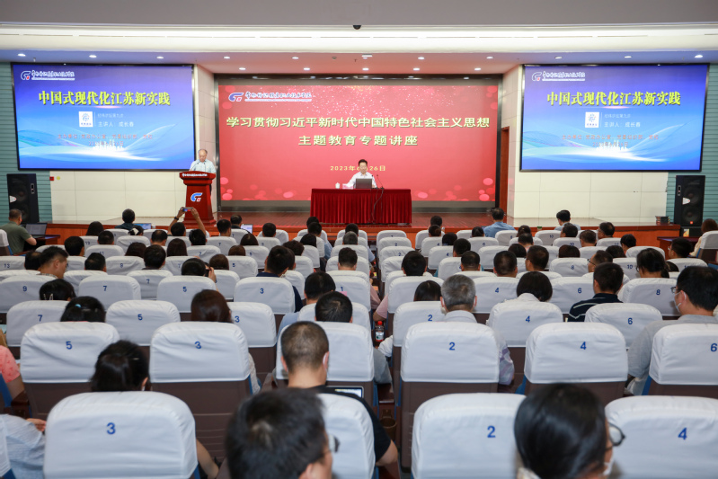6月26日,我校在图文报告厅举办学习贯彻习近平新时代中国特色社会主义思想主题教育专题报告会,邀请江苏省重点高端智库——江苏长江经济带研究院院长、首席专家,江苏乡村振兴智库研究院首任院长成长春教授作专题辅导报告。学校领导班子、全体科级及以上干部、党支部书记、教研室主任参加报告会。报告会由党委书记吴访升主持。