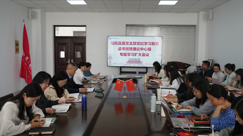 4月24日下午,马克思主义学院直属党支部召开党纪学习教育读书班暨理论学习中心组专题学习扩大会议,开展集中学习。马院党政班子、理论学习中心组成员、全体党员参加学习会,会议由直属党支部书记、院长陈利主持。