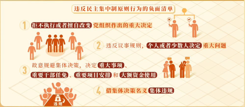 《中国共产党纪律处分条例》第七十七条对违反民主集中制原则的行为作出处分规定。可分为四类: