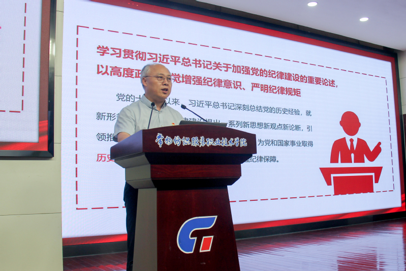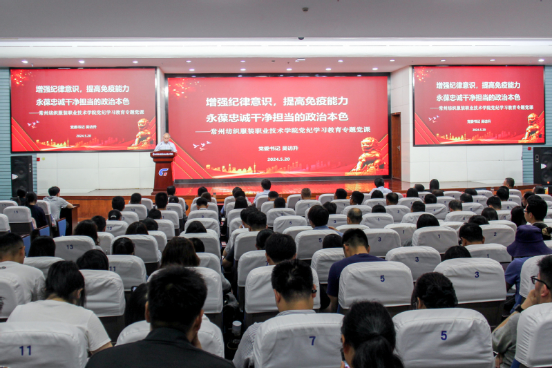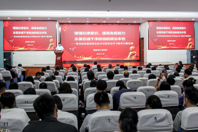 为深入学习贯彻新修订的《中国共产党纪律处分条例》,进一步增强全体党员干部的纪律意识和规矩意识,认真落实党组织书记第一责任人责任,深入推动党纪学习教育走深走实,根据学校党纪学习教育总体安排,5月20日下午,校党委书记吴访升以《增强纪律意识,提高免疫能力,永葆忠诚干净担当的政治本色》为题,在图文报告厅讲授党纪学习教育专题党课。校党委委员、纪委委员、二级党组织委员、党支部委员;全体中层干部;专职组织员;青马班学员、预备党员、发展对象、入党积极分子参加本次专题党课。党课由校党委副书记王顺明主持。