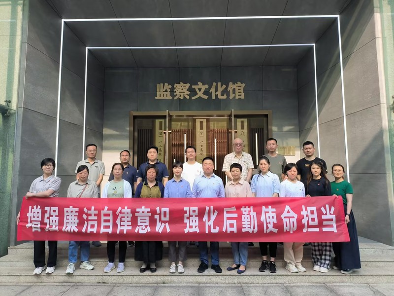 为深入学习贯彻党的二十大精神,推进全面从严治党和党风廉政建设向纵深发展,贯彻落实党纪学习教育,进一步加强后勤廉政文化建设,5月24日下午,后勤直属党支部组织全体党员、入党积极分子赴常州监察文化馆开展“增强廉洁自律意识,强化后勤使命担当”纪律教育主题党日活动。