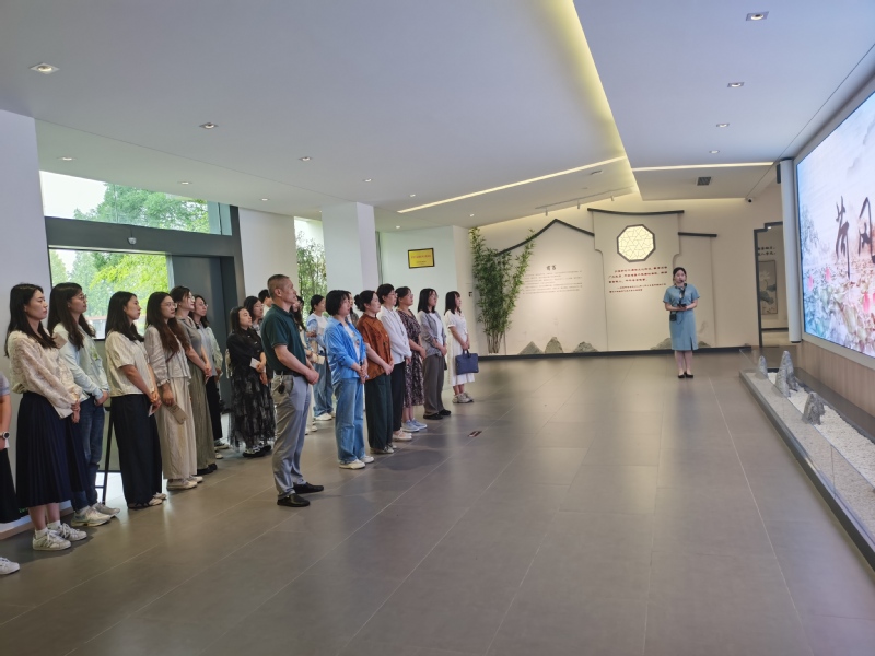 万荷馆采用“引景入馆”营造理念,将馆外荷花盛开的景象引入序厅,形成“荷园莲影田田,万荷馆清风阵阵”对照。在讲解员引导下,全体党员参观了“人文底蕴”“红色基因”“时代风采”三大版块,品读了季子挂剑、唐荆川“清白传家”的廉洁故事,观看了名垂青史的家训名篇,学习了“常州三杰”的勤廉故事。